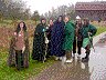 Strollin’The rest of the Rivendell crew was already there when we joined the group. I suggested that we simply wait until 12:17 to start, declaring the extra two minutes the time it would take us to slog up to the flag and back. But to my surprise, when the game started, we didn't go up the horse path or down towards the crossroads. Rather, we started up towards the Rivendell flag, then past it, and into the woods. It soon became apparent that we were going straight up the ridge. "This is definitely a Rich & Todd plan," I thought to myself as I struggled along. As tough a time as I was having, I felt worse for Roz, who had a big flowing cloak that was doing its best to blow away. I did finally struggle my way to the top of the ridge. While I caught my breath, I kept an eye out for Roz, but she did not appear, so I asked Nick (Gimli) to see if he could see her—the ground was so slippery and muddy that I feared she might have fallen or been hurt. It turns out that she had simply lost her brooch, gone back down to get it, and decided not to try the ridge again.